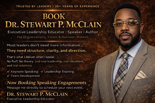 Dr. Stewart P. McClain is an author, international speaker, and Executive Leadership Educator with over 26 years of speaking experience.